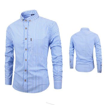 Camisa a cuadros de manga larga de algodón transpirable para hombre, camisa informal ajustada para hombre